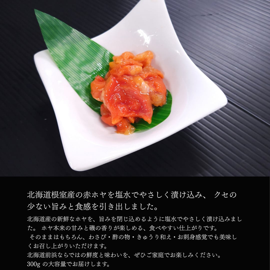 北海道根室の海で育った、鮮度抜群の赤ホヤを丁寧に下処理し、生のまま急速冷凍しました。