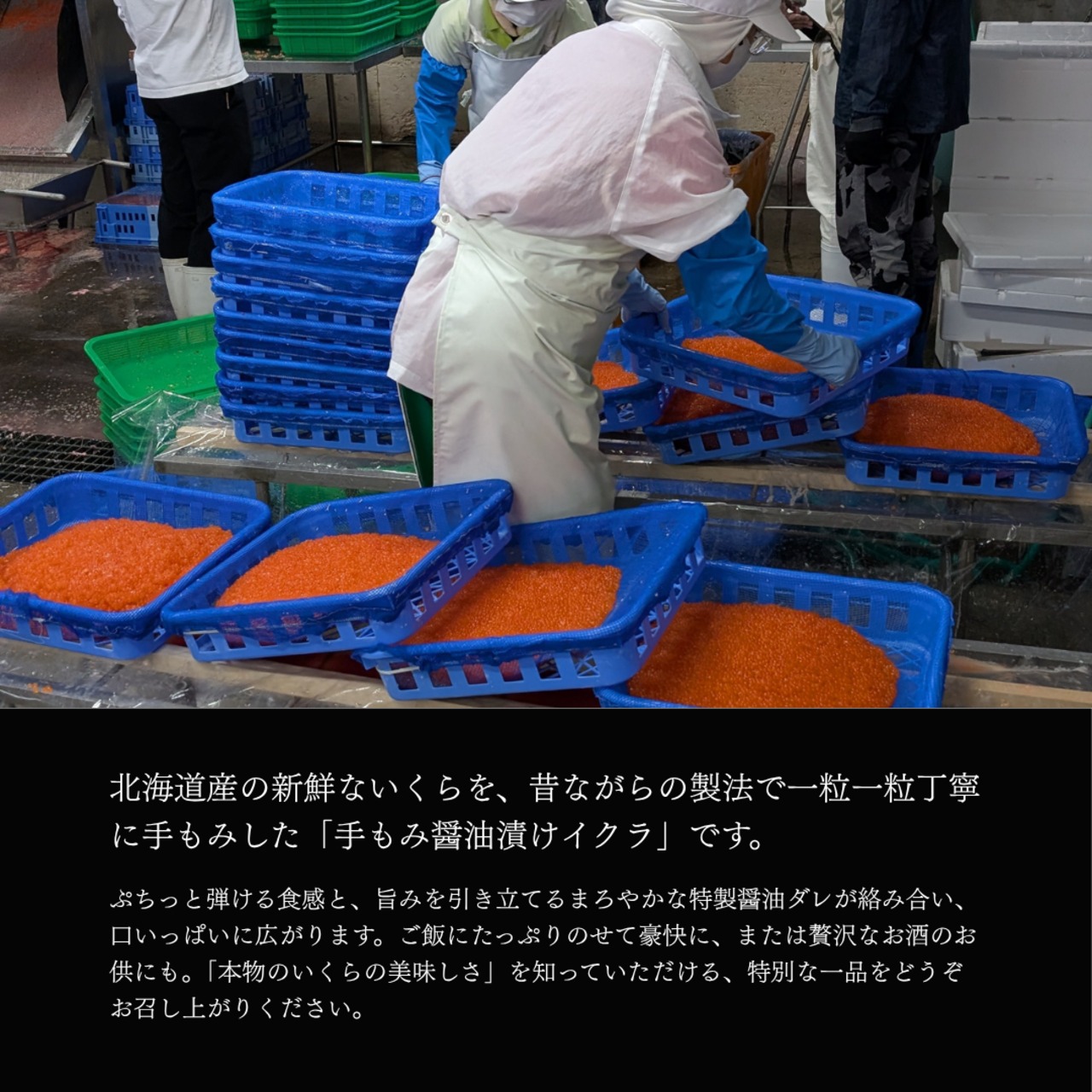 北海道産の新鮮ないくらをお届けします。鮮やかな色合いとぷるぷるの食感が魅力のいくらは、口に含むと広がる濃厚で上品な旨みは、まさに至福のひとときです。