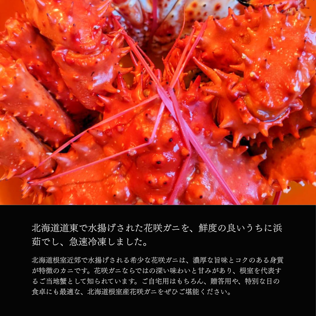 北海道道東で水揚げされた花咲ガニを、鮮度の良いうちに浜茹でし、急速冷凍しました。
