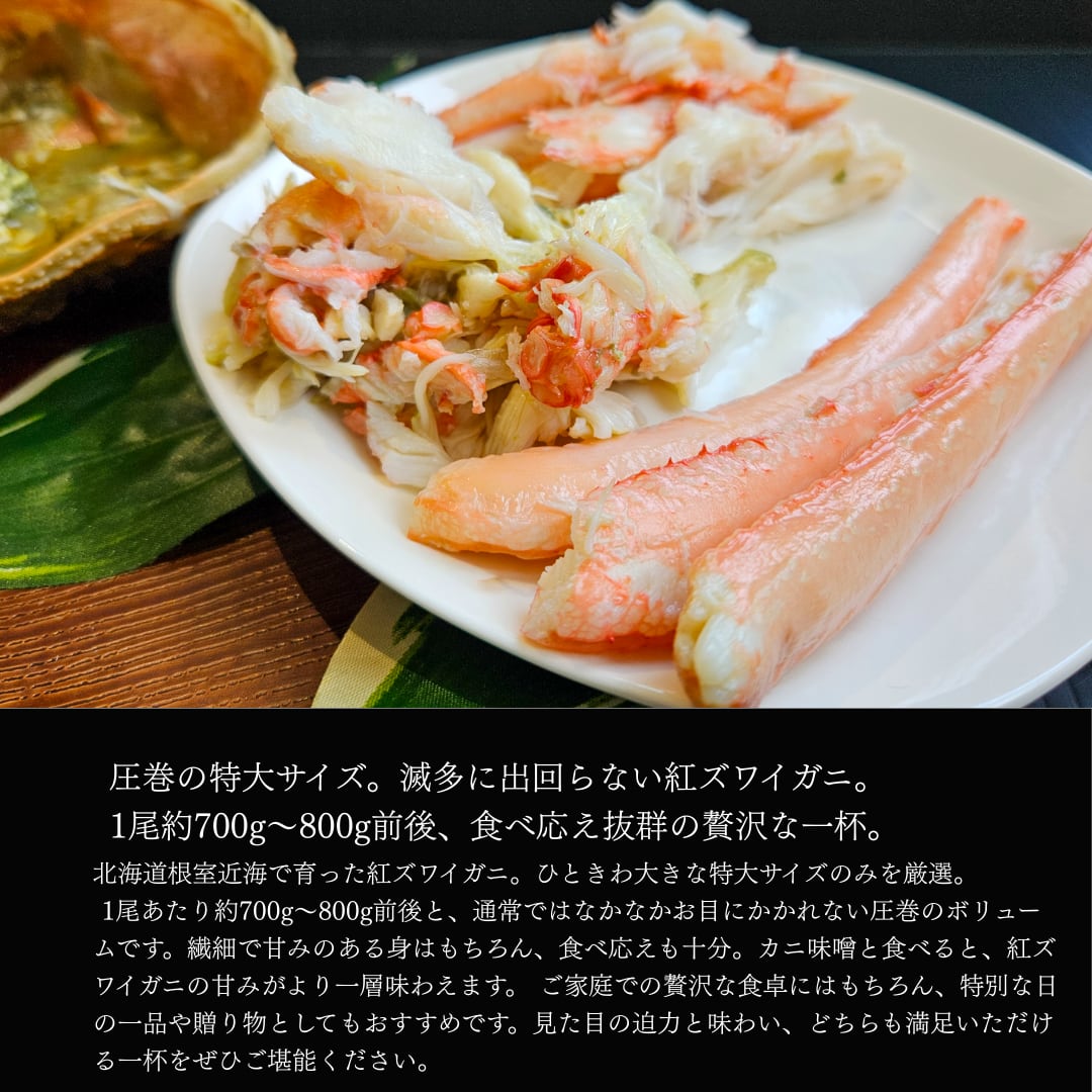 北海道根室産 特大ボイル冷凍紅ズワイガニ姿2尾入